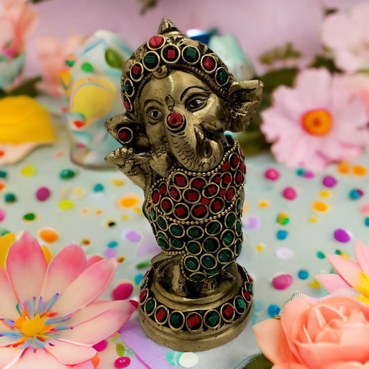 Brass Ganesh Bodiless with Minakari Work – A Symbol of Divine Artistry and Prosperity